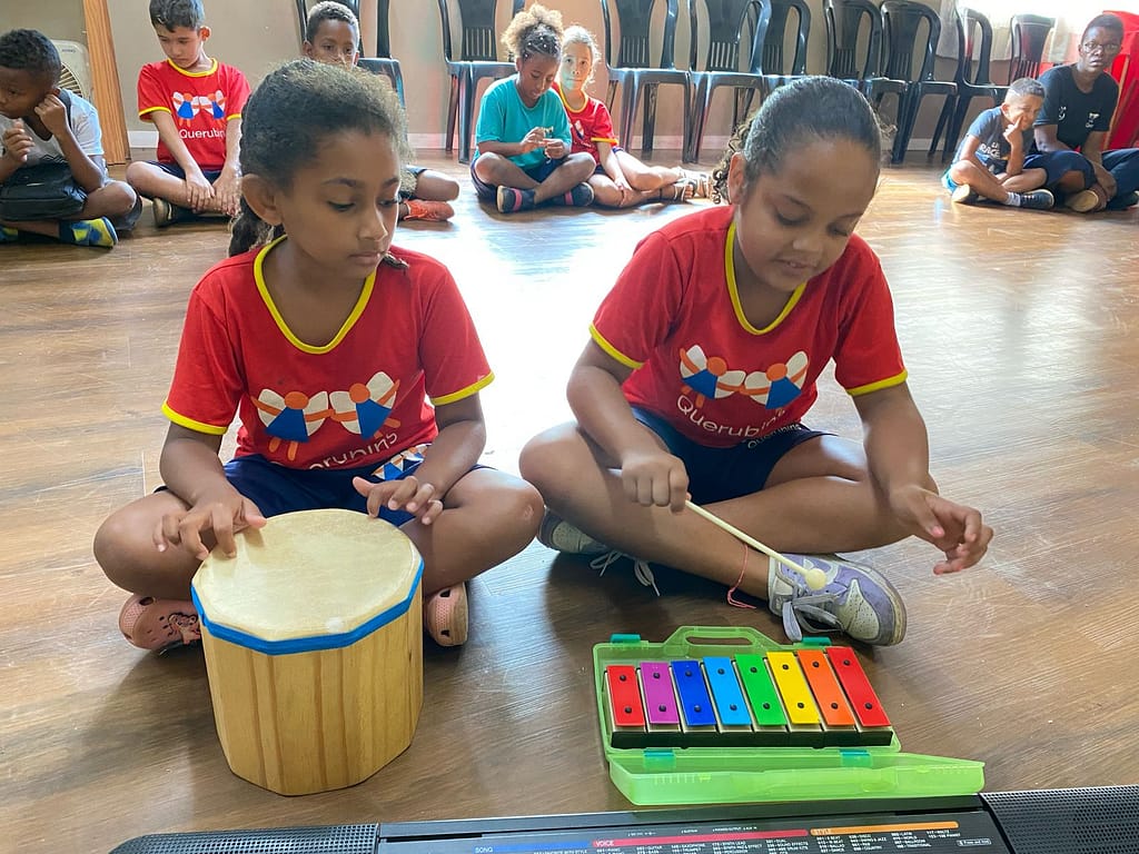A oficina de Iniciação Musical do Querubins oferece às crianças o primeiro contato com o universo da música. Por meio de brincadeiras, cantigas e instrumentos, os educandos aprendem noções básicas como ritmo, melodia e percepção sonora.